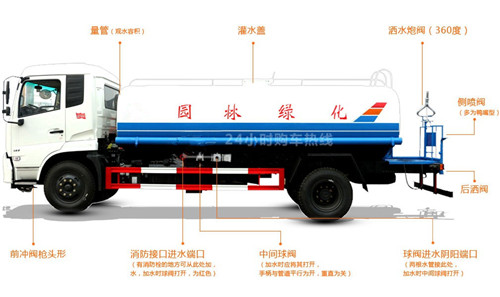 C:灑水車在噴灑或用高炮時,務(wù)必將前沖或后灑任意一個球閥打開一個,否則將管道,泵,密封墊因壓力過大沖壞。
